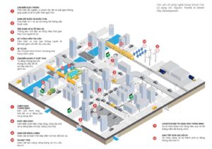 Bên cạnh đó, các giải pháp cảnh quan – nước như vườn mưa và bề mặt thấm nước giúp lọc ô nhiễm, cải thiện chất lượng nước mưa và không khí. Việc bố trí công trình dựa trên các điều kiện khí hậu tự nhiên, đặc biệt là hướng gió và thông gió chéo, giúp giảm áp lực gió lên từng khối nhà, đồng thời nâng cao trải nghiệm không gian cho người đi bộ.